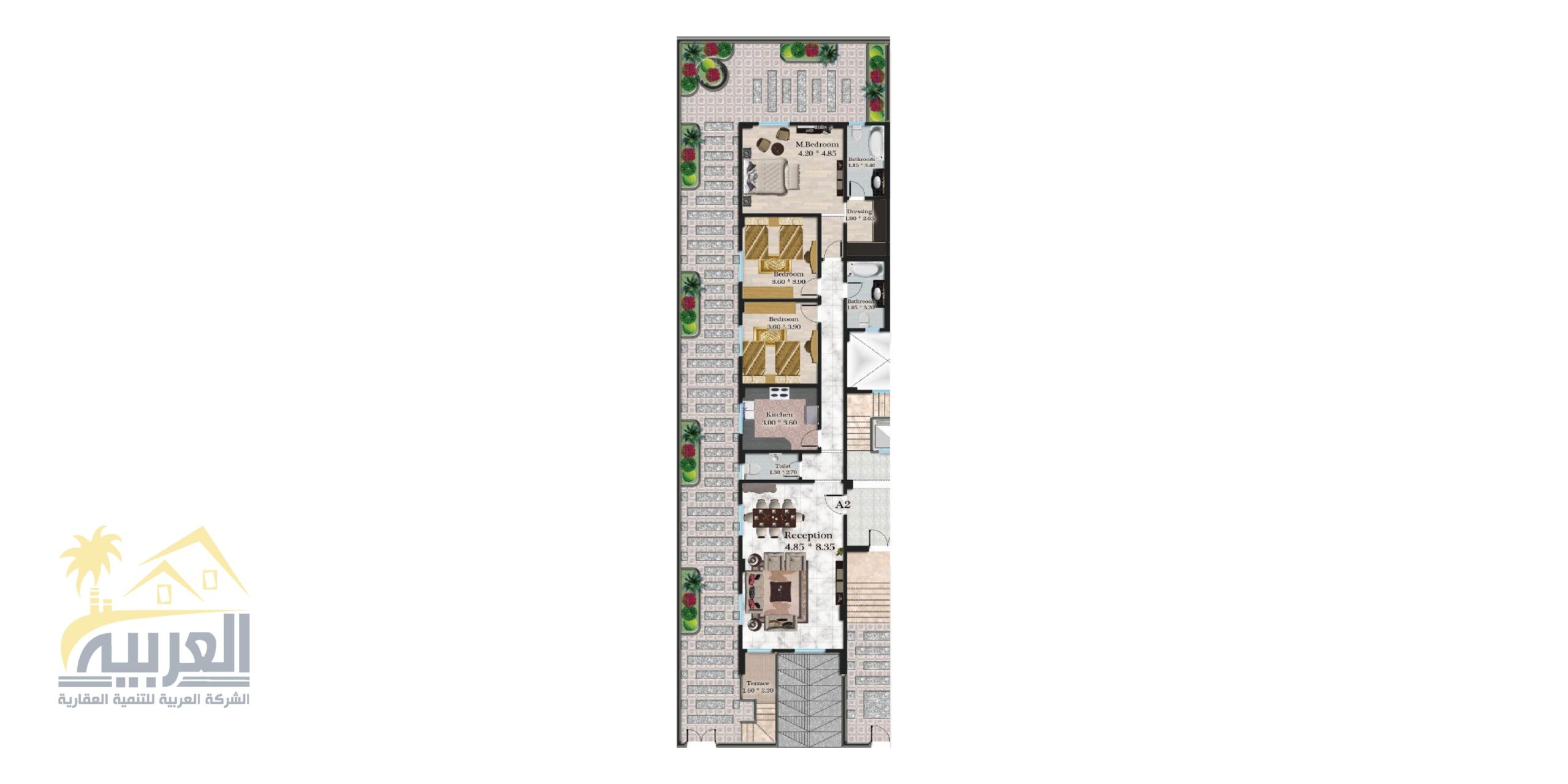 عدد الغرف 3 + غرفه ملابس + غرفة ليفنج