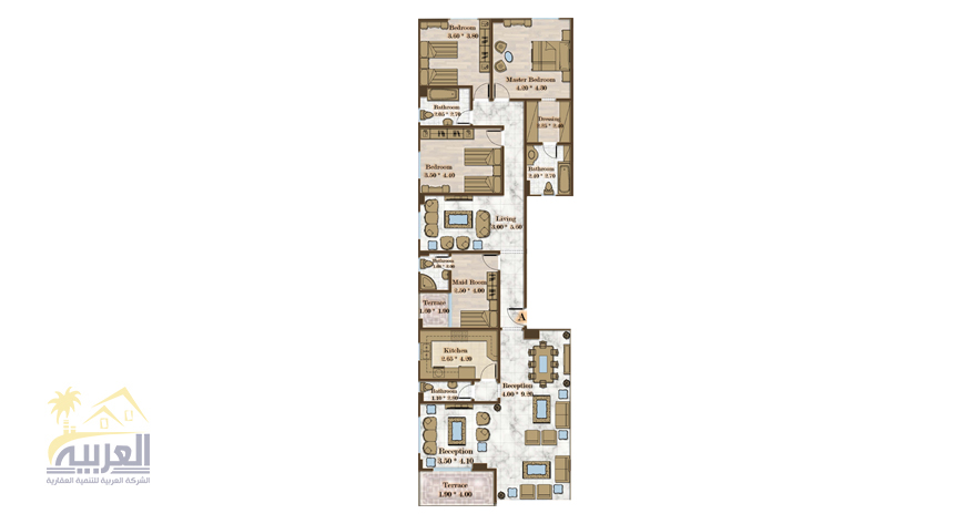 • عدد الغرف 4 + غرفة ليفنج