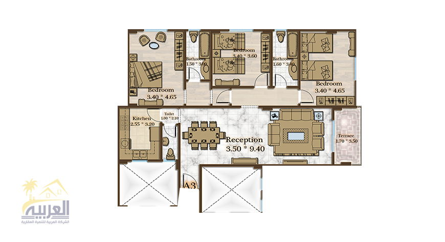 عدد الغرف 3